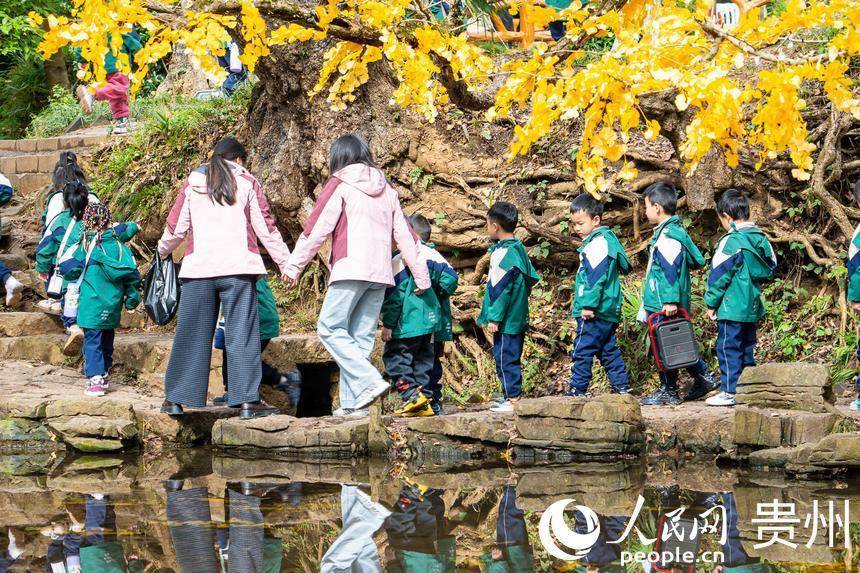 村居与银杏树交相辉映。人民网 阳茜摄人民网盘州11月20日电 正值初冬时节,漫步于贵州省六盘水市盘州市妥乐村,一树树金黄的银杏挺立在村寨之中。微风拂过枝头,将片片银杏叶轻送至屋檐下、村路旁。前来开展游学活动的师生们俯身拾起落叶,精心制作成各式银杏摆件——这不仅是自然赠予的礼物,也成为他们把课堂搬进大自然最生动的见证。在妥乐村,这样别开生面的生态文化游学课程,已成为一道常态化的风景。