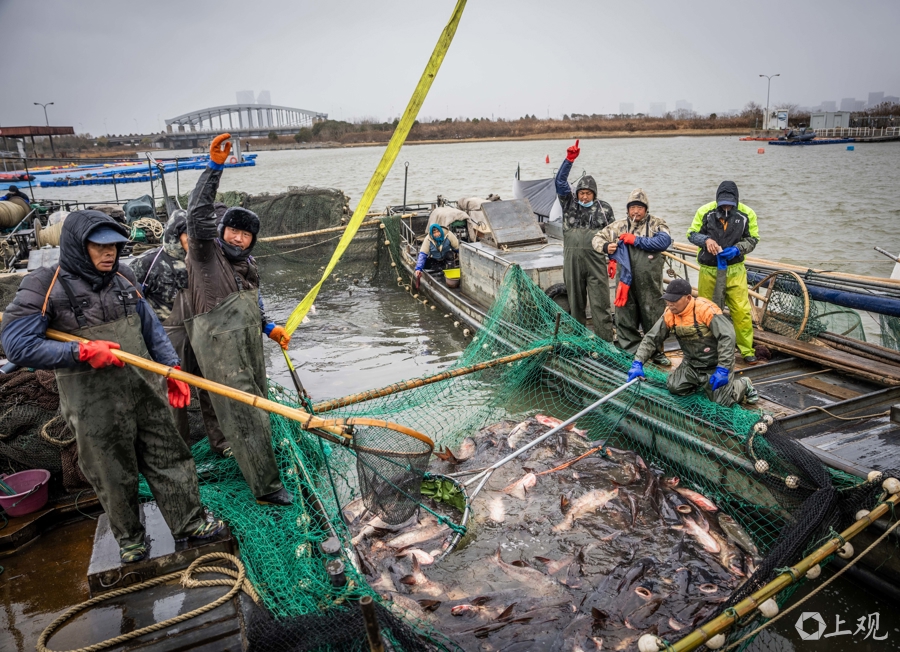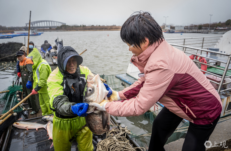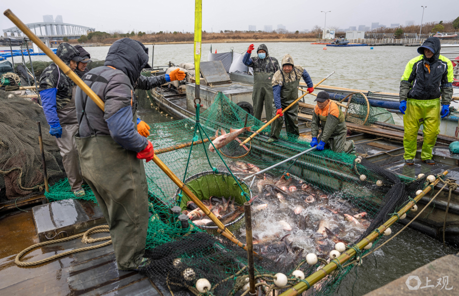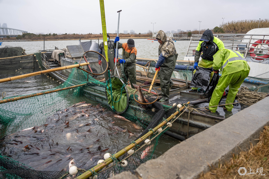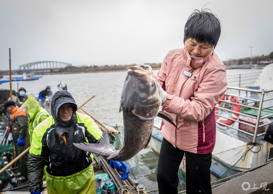 今年,王丽卿教授团队计划在严寒冬季鱼类代谢缓慢时进行捕捞,捕出规格为6-8斤/尾的花白鲢约5万-6万斤。捕捞上岸的渔获物,继续秉承“生态惠民”的宗旨,定向免费馈赠给临港新片区的城市建设者、相关企业及社会福利机构,让生态治理成果直接回馈社会。