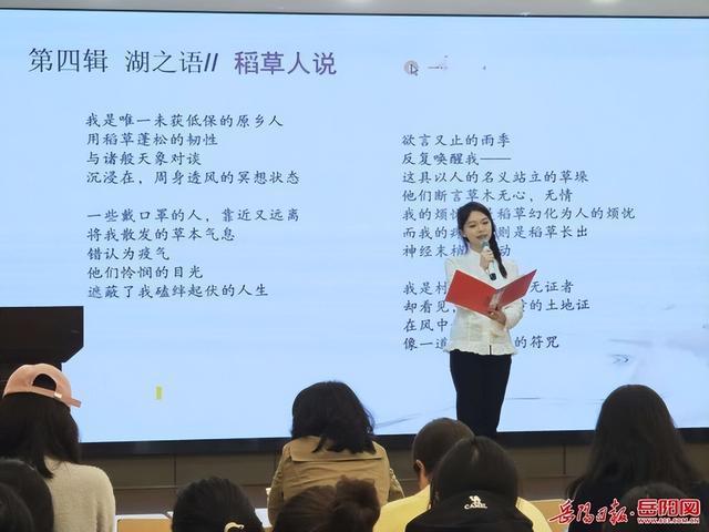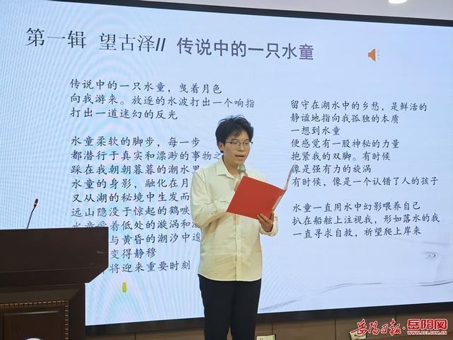 活动现场,张子健、袁咪雅、童雅俐、蒋好等大学生诗歌爱好者先后朗诵了《大湖之骨》《传说中的一只水童》《青草湖》《稻草人说》等诗作,声情并茂的演绎让在场师生深刻感受到了诗歌的艺术魅力。